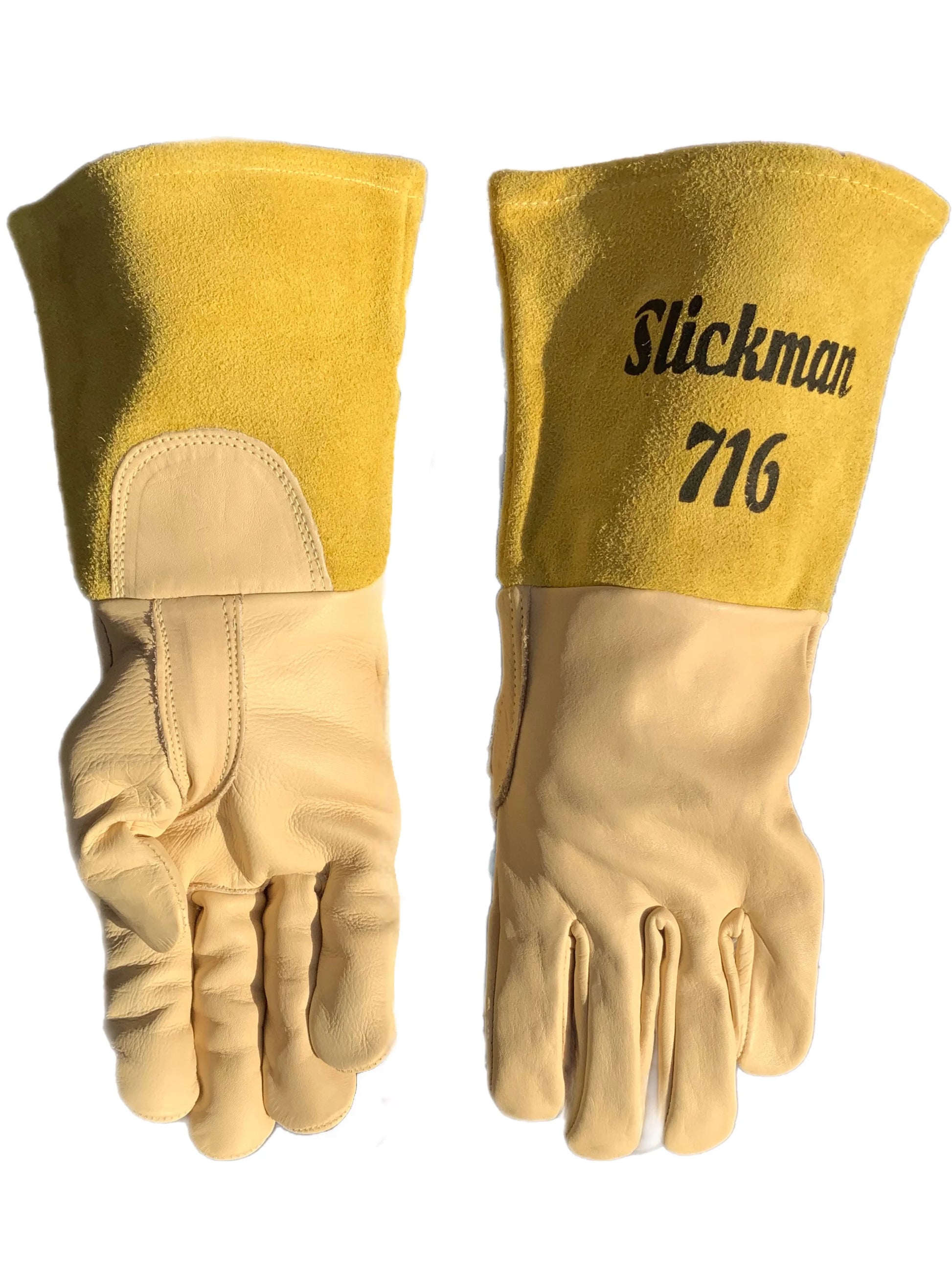 The Slickman 716 is the reason were all here, its the flagship, the predecessor, Apollo 1, cardinal, the cats pajamas if you will. This glove was derived from a welders sore hands using a stick welding glove, and the aggravation of the lifespan of tig